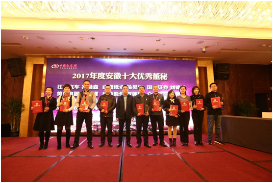 活動期間,張文生為評選出的2017年度安徽轄區(qū)十大優(yōu)秀上市公司、十大優(yōu)秀董秘、十大優(yōu)秀證代頒獎。