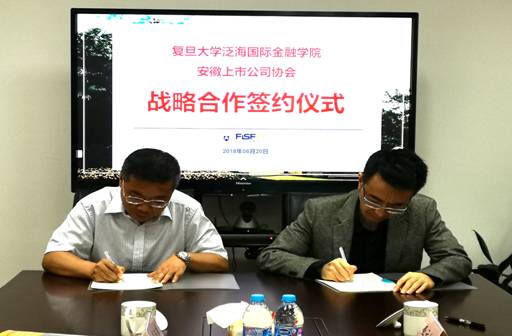 2018年6月20日,我會與復(fù)旦大學(xué)泛海國際金融學(xué)院在上海復(fù)旦大學(xué)簽署戰(zhàn)略合作框架協(xié)議。安徽上市公司協(xié)會副會長兼秘書長袁宏生、復(fù)旦大學(xué)泛海國際金融學(xué)院院長錢軍出席簽約儀式。