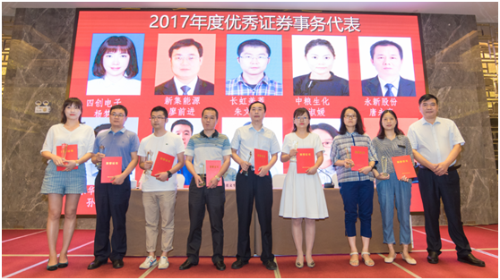 會上對評選出的安徽上市公司2017年度優(yōu)秀董秘20名、優(yōu)秀證代20名以及4名“董秘勛章”獲得者進(jìn)行了表彰。
