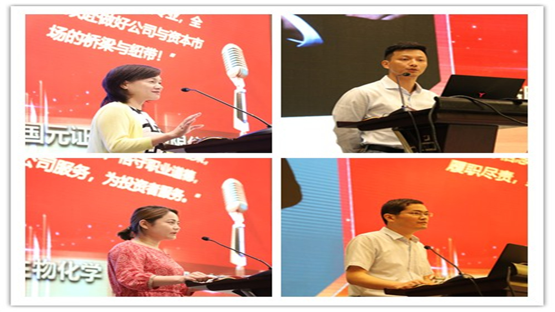 現(xiàn)場邀請國元證券劉錦峰、三七互娛葉威、中糧生化孫淑媛、國風(fēng)塑業(yè)楊應(yīng)林作為獲獎代表發(fā)言。