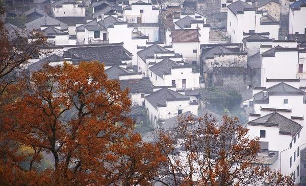 在婺源長溪村的深秋季節(jié),村莊前后二百多株連片生長幾百年的香楓樹就會一片火紅,高大的紅楓與白墻黑瓦馬頭墻掩映為一體,仿佛進入畫般的境界。村內(nèi)還有許多條意境深遠的古巷,很安靜,抬頭放眼,一片片紅葉林映入眼簾。滿山到處都是紅色的楓樹,村后綿延數(shù)里的香楓紅艷似火,形成了秋季山村別樣的風光。