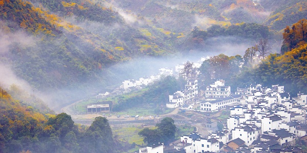 在江西婺源,有一個深藏在大山里的古村落,長溪村。長溪村由于交通不便,紅葉一直不為人知,每到深秋時節(jié),長溪村絢麗多姿,村口巷尾的古楓,如火般鮮紅。村莊前后有二百多株連片生長幾百年的香楓樹就會一片火紅,高大的紅楓與明清古徽派建筑粉墻黛瓦、街巷溪水,掩映為一體,讓你仿佛走進了一個世外桃源。