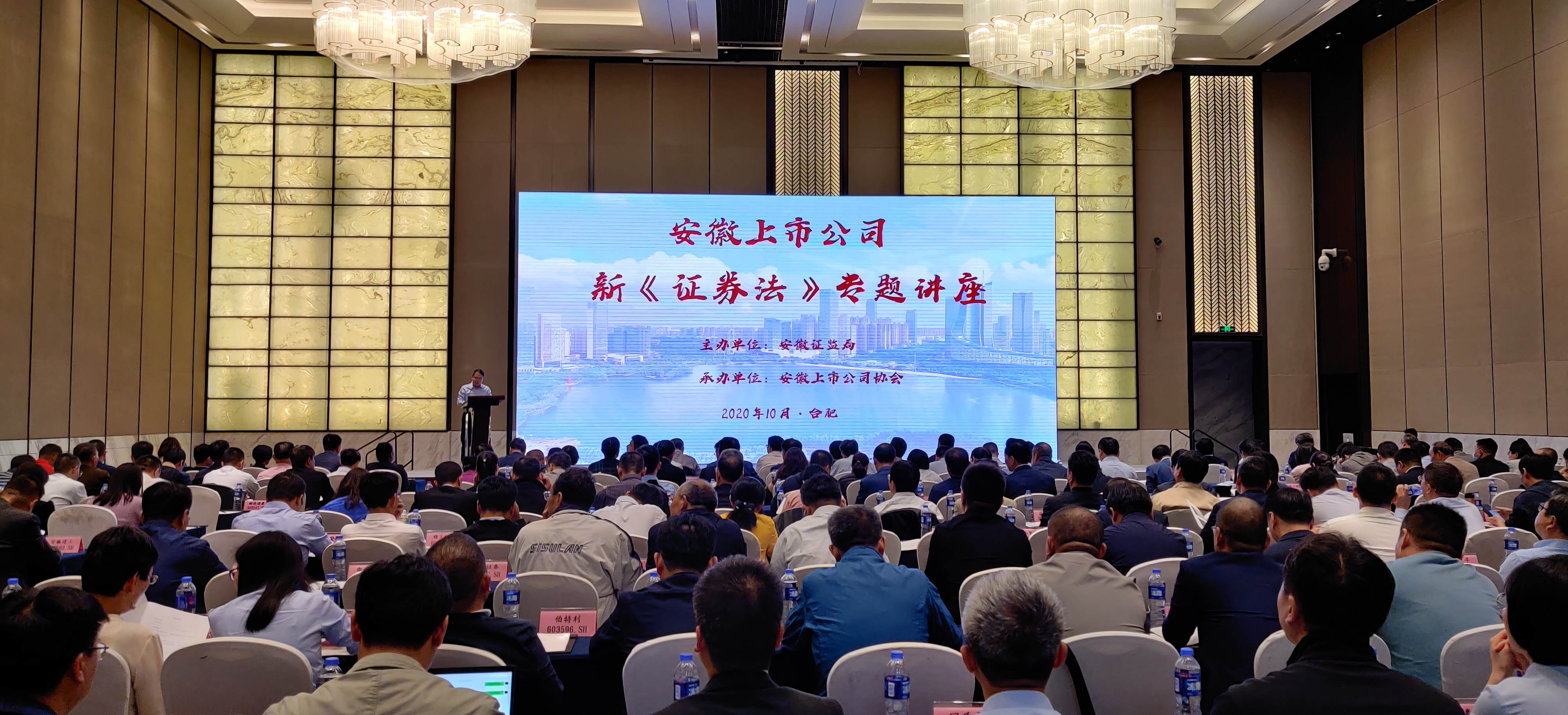 新《證券法》已于今年3月1日正式實施,為及時宣講政策解讀,持續(xù)保持公司合規(guī)運作,促進(jìn)上市公司高質(zhì)量發(fā)展,我會于10月12日成功舉辦安徽上市公司《證券法》專題講座,會員單位董監(jiān)事230余人參加培訓(xùn)。安徽證監(jiān)局公司處處長劉勇、副處長王登、安徽上市公司協(xié)會副會長兼秘書長袁宏生等出席。
