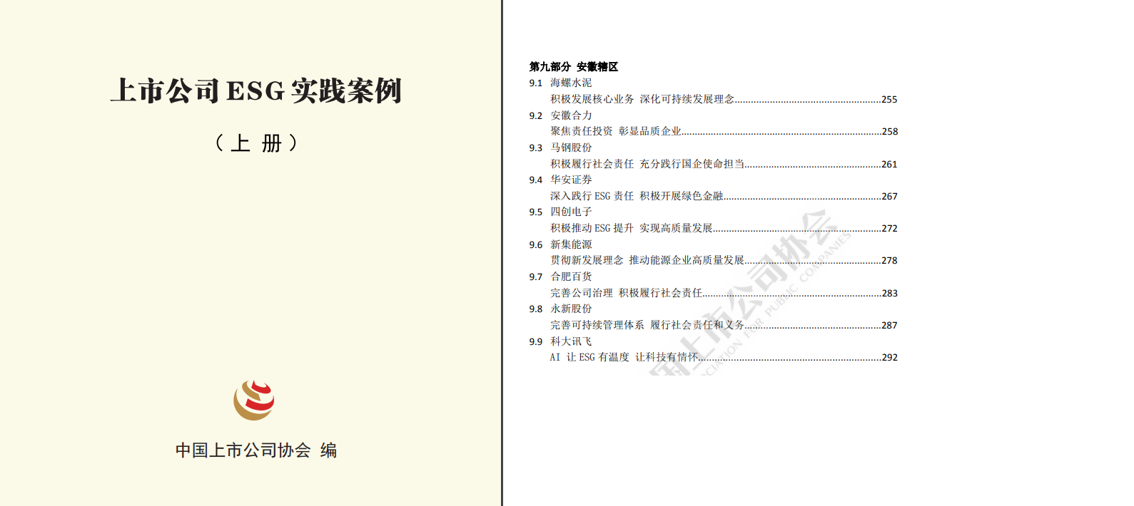 5月份,我會(huì)積極引導(dǎo)安徽上市公司把推進(jìn) ESG工作作為提升上市公司質(zhì)量的重要抓手,并將工作實(shí)踐總結(jié)提高,先后推薦11家會(huì)員單位參加征集活動(dòng)。經(jīng)地方上市公司協(xié)會(huì)推薦、上市公司自薦,并征求監(jiān)管機(jī)構(gòu)、滬深證券交易所意見(jiàn)之后,最終篩選收錄來(lái)自25個(gè)轄區(qū)的133家上市公司案例,匯編成《上市公司ESG實(shí)踐案例》。我會(huì)會(huì)員單位海螺水泥、安徽合力、馬鋼股份、華安證券、四創(chuàng)電子、新集能源、合肥百貨、永新股份、科大訊飛等9家單位入選。