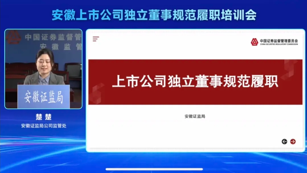 為進一步促進轄區(qū)獨立董事規(guī)范履職行為、提升履職能力,充分發(fā)揮獨立董事在公司治理中的作用,提高轄區(qū)上市公司規(guī)范運作和公司治理水平,我會于2024年3月1日成功舉辦安徽上市公司獨立董事規(guī)范履職線上培訓(xùn)會。轄區(qū)176家上市公司500余名獨董及相關(guān)人員參會。