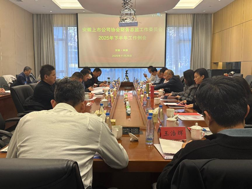 為深入貫徹資本市場最新監(jiān)管政策要求,持續(xù)提升安徽轄區(qū)上市公司財務管理效能與規(guī)范運作水平,進一步強化財務總監(jiān)工作委員會隊伍建設,助力上市公司實現(xiàn)高質(zhì)量發(fā)展,在安徽證監(jiān)局指導下,11月26日,安徽上市公司協(xié)會第五屆財務總監(jiān)工作委員會2025年下半年工作例會在宣城召開,二十余名財總委和教培委委員出席會議。