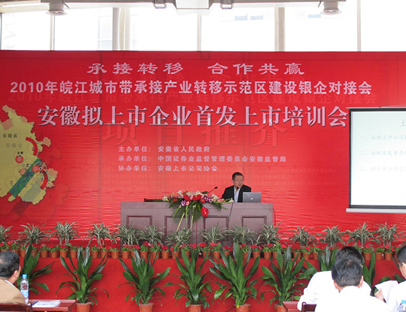 設(shè)銀企對接會的一個重要組成部分,由安徽證監(jiān)局承辦、安徽上市公司協(xié)會協(xié)辦的企業(yè)首發(fā)上市培訓(xùn)會在蕪湖舉行。參加培訓(xùn)的企業(yè)共有24家,約60人。此次培訓(xùn)會對進(jìn)一步促進(jìn)企業(yè)上市,發(fā)揮資本市場推動結(jié)構(gòu)調(diào)整、承接產(chǎn)業(yè)轉(zhuǎn)移起到了促進(jìn)作用。