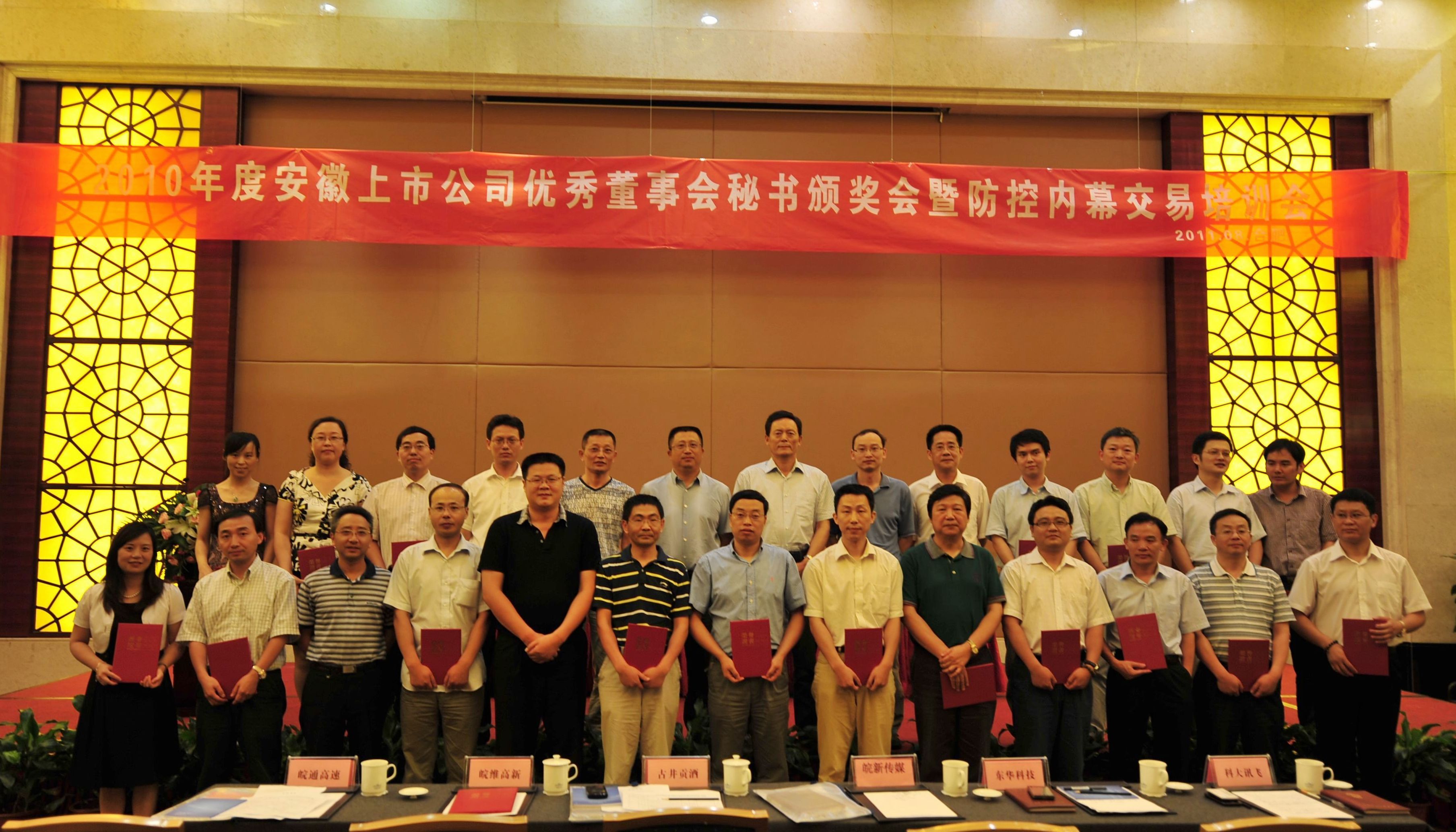 2010年度安徽上市公司優(yōu)秀董事會秘書頒獎會暨防控內幕交易培訓會在肥召開