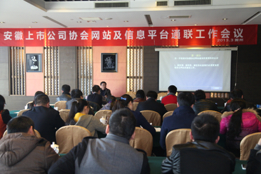為加強(qiáng)會(huì)員單位的通聯(lián)服務(wù)工作、組建和培訓(xùn)協(xié)會(huì)網(wǎng)站信息通訊員隊(duì)伍,提升安徽上市公司協(xié)會(huì)網(wǎng)站及信息平臺(tái)影響力,更好地發(fā)揮網(wǎng)站和綜合信息服務(wù)平臺(tái)的服務(wù)作用,安徽上市公司協(xié)會(huì)于3月21日在滁州召開了安徽上市公司協(xié)會(huì)網(wǎng)站及信息平臺(tái)通聯(lián)工作會(huì)議,本次會(huì)議有28家上市公司的證券代表和相關(guān)工作人員共35人參會(huì),安徽證監(jiān)局有關(guān)處室派員現(xiàn)場(chǎng)指導(dǎo)。