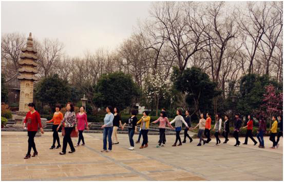 孫愛萍老師帶領(lǐng)與會代表在三塔廣場做健康有氧運(yùn)動操